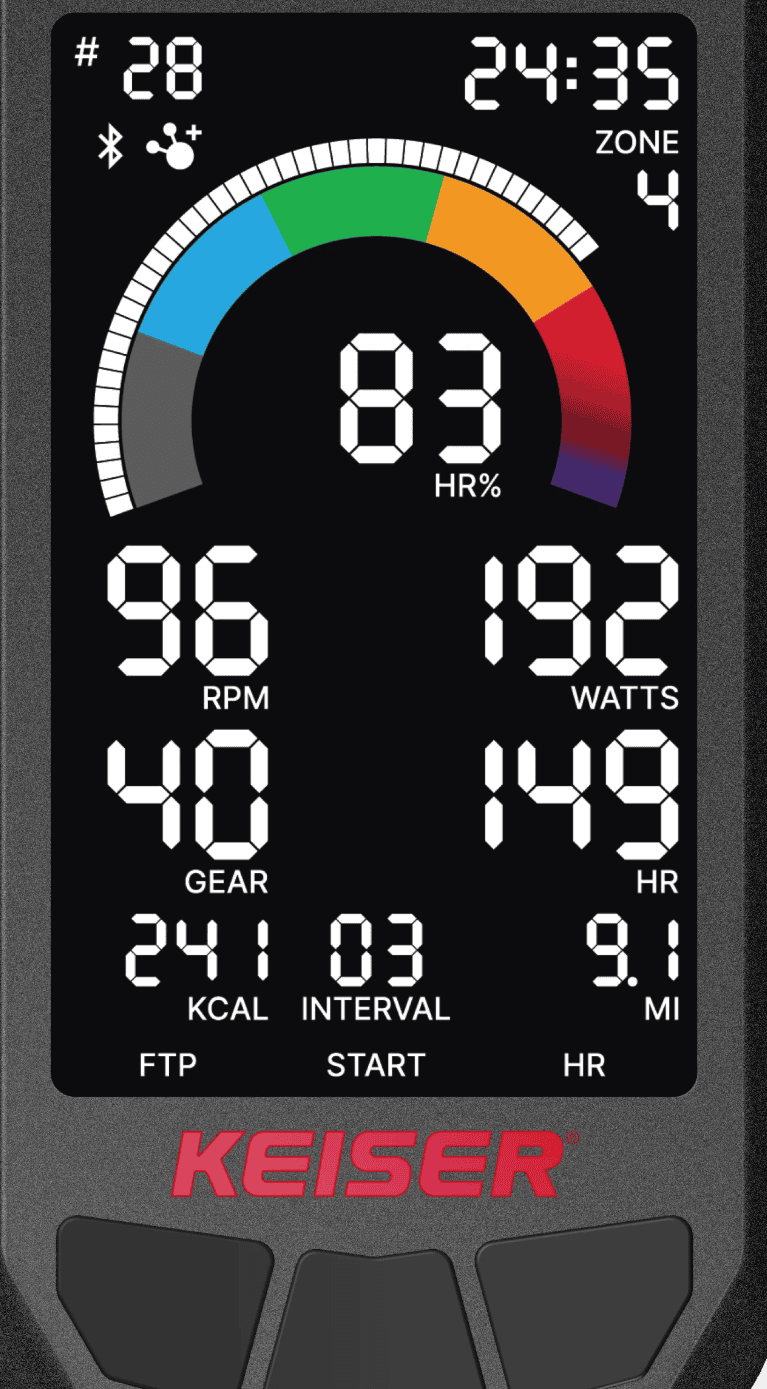 Keiser M3i Studio — אופני ספינינג מגנטיים עם מסך M Connect Studio (Model Studio, ייצור Keiser)