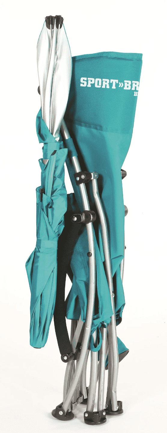 כיסא החוף Sport-Brella מספק נוחות מוחלטת בשמש ובחול. כולל שמשייה המחוברת לכיסא ומעניקה כיסוי UPF 50+ ומתכווננת למגוון עמדות רצויות. מעוצב עם משענות יד מרופדות ומחזיק כוסות מובנה להרפיה נוספת. מסגרת הפלדה החזקה בעלת המושב הרחב תומכת עד 130 ק"ג.