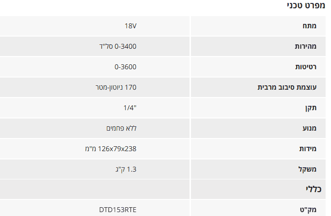 מק"ט MAK-DTD153RTE קטגוריה