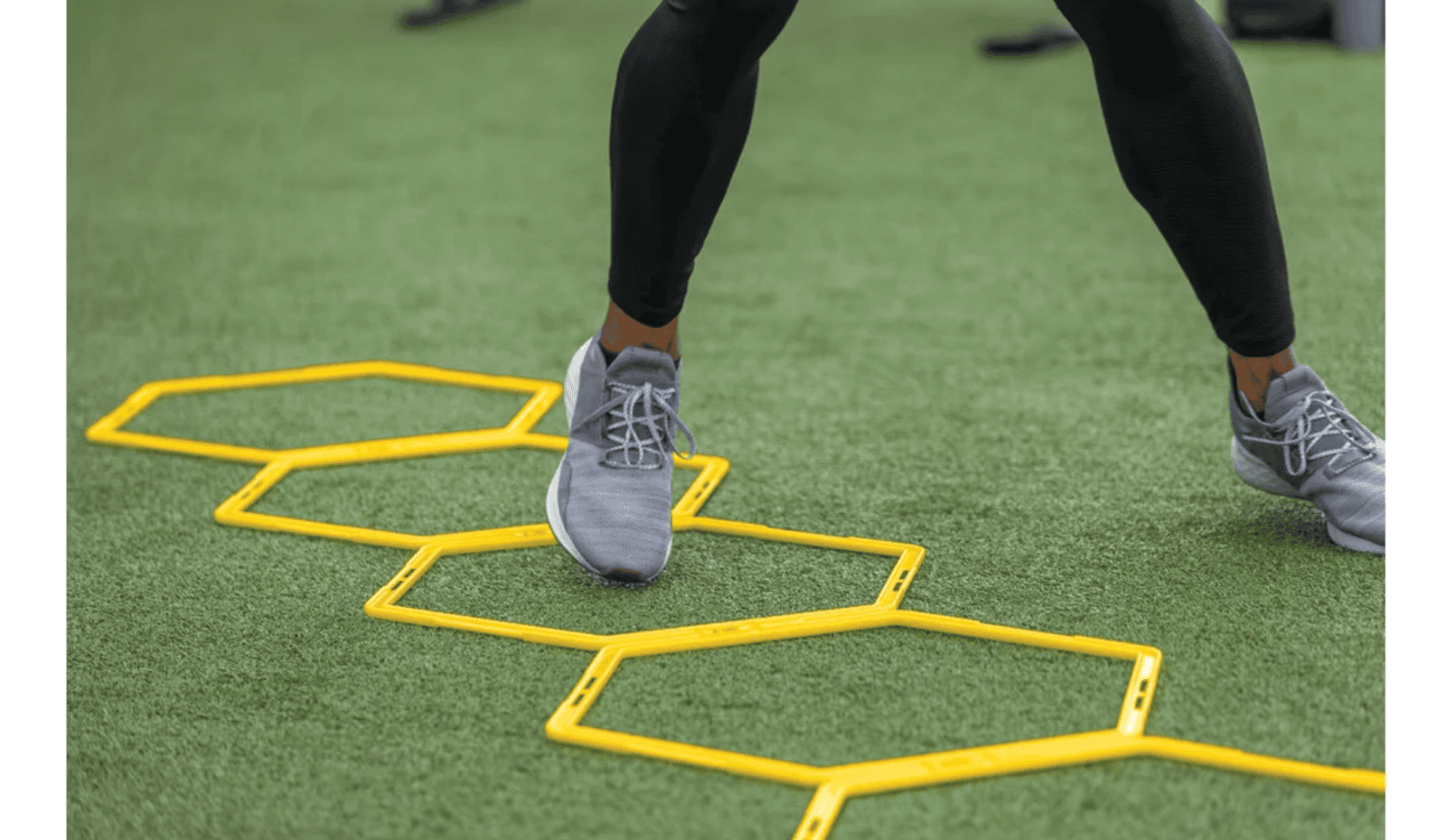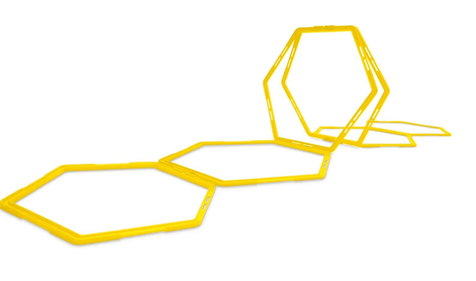 סולם זריזות מודולרי עם טבעות משושה הניתנות לחיבור – לבניית אימונים מותאמים לשיפור עבודת רגליים, זריזות ותנועות פיצוץ בדרכים שונות, ביתית ואישית.