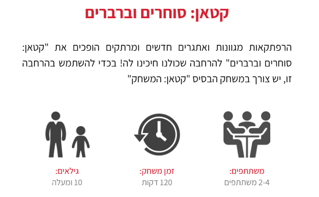 הרפתקאות מגוונות ואתגרים חדשים ומרתקים הופכים את "קטאן: סוחרים וברברים" להרחבה שכולנו חיכינו לה! בכדי להשתמש בהרחבה זו, יש צורך במשחק הבסיס "קטאן: המשחק"