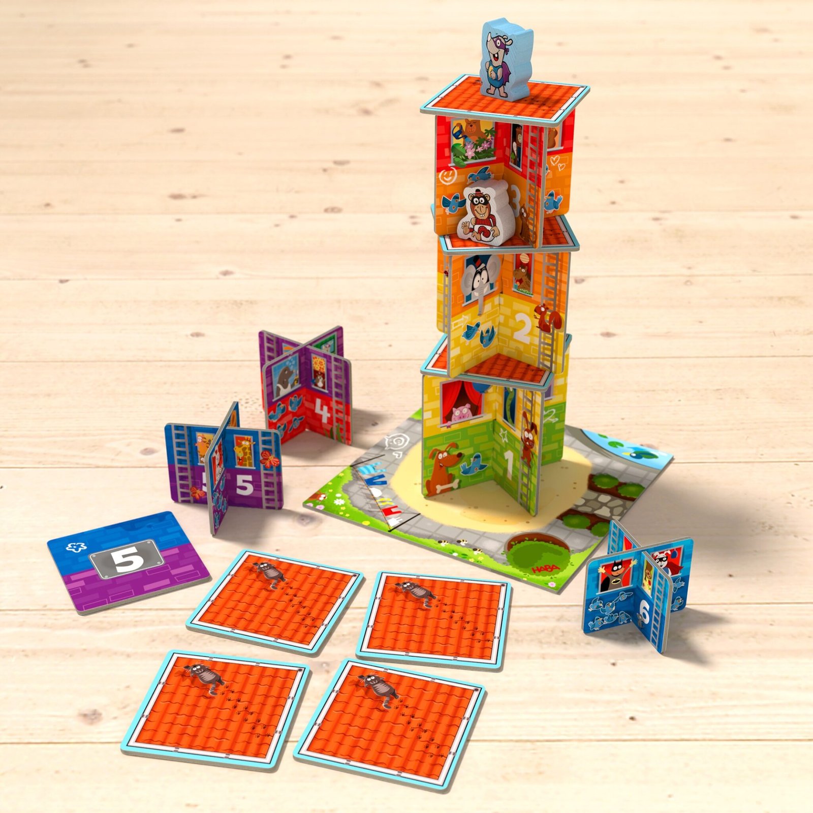 במארז יש שלושה משחקי התאמה ובנייה. במשחק הראשון יוצרים בעזרת קלפי הגג שביל לבנים ארוך על פי הצבעים הזהים. במשחק השני בונים מגדל רב קומות יציב, שלא יקרוס, כשקרנף העל יעמוד על הגג שלו. במשחק השלישי מזהים מה תהיה הקומה הבאה בתור על פי גודל ורצף המספרים. מתאים גם למשחק עצמאי.